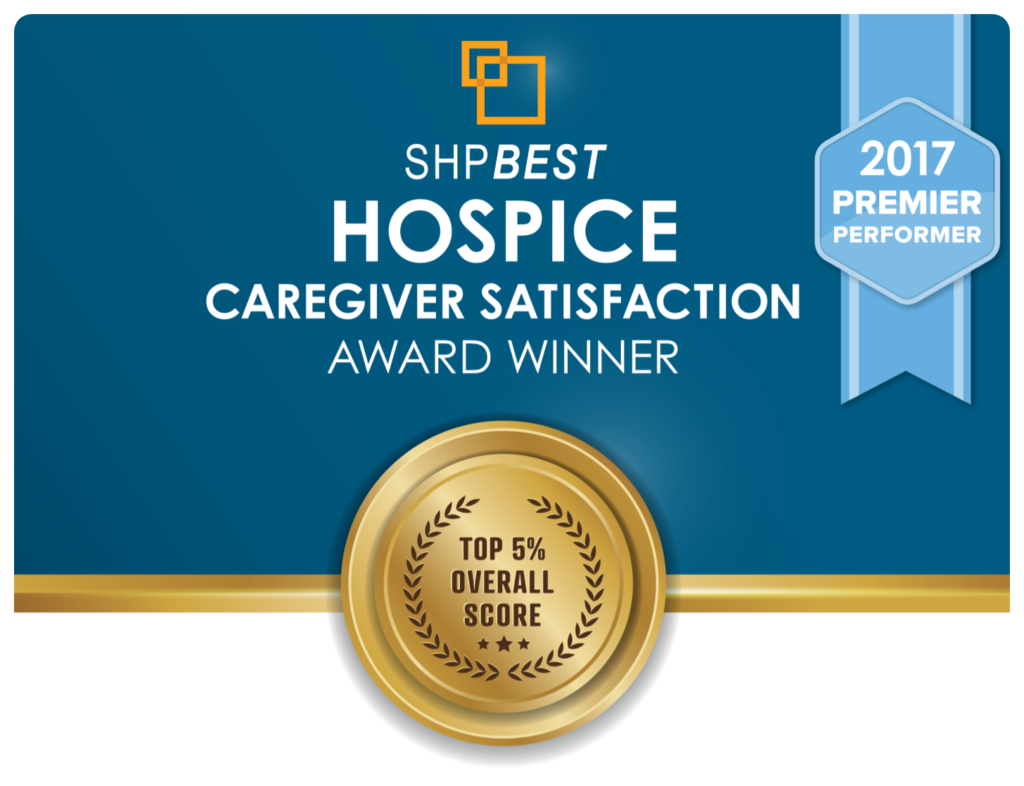 SHPBEST HOSPICE CAREGIVER SATISFACTION AWARD WINNER – TOP 5% OVERALL SCORE – 2017